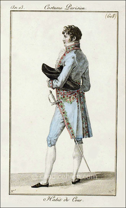 knee-breeches, white cravats, and chapeau-bras (Napoleonic hat)- requested attire for the gentlemen at Almack's