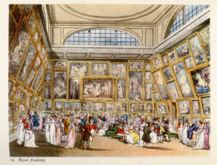 "Exhibition Room, Somerset House" by Thomas Rowlandson and Auguste Pugin, from Ackermann's Microcosm of London, 1808. Collection of Candice Hern.